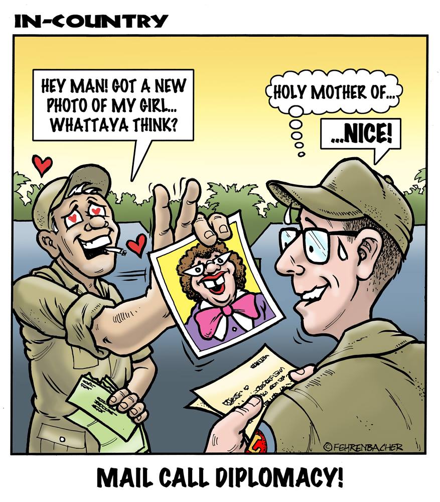 Phil enlisted in the Army in 1965 where he served for years in Vietnam.  He became a graphic designer and has worked for the state of Oregon for 26 years.  He retired in 2003 and started the Cartoon "In-Country".  The cartoons reflect his experiences during his tour of duty in South Vietnam.